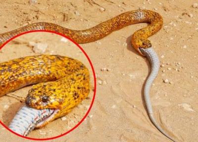 تصاویری از یک مار کبرای مسی در حال خوردن و بلعیدن یک مار دیگر منتشر شده است.