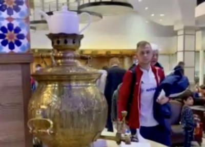 اعضای تیم ملی روسیه برای برگزاری ملاقات محبت آمیز با تیم ملی ایران ساعاتی پیش به تهران رسیدند و وجود یک سوغات روسی در فرودگاه، آن ها را ذوق زده کرد.