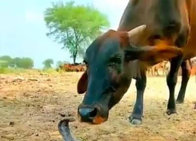 اخیرا تصویر ویدیویی کوتاهی در فضای شبکه اجتماعی توییتر پر شده است که نشان می دهد گاو و مار کبری با یکدیگر دوست اند و بازی می نمایند.