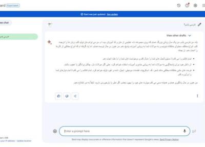 زومیت: پشتیبانی از زبان فارسی به هوش مصنوعی Bard گوگل اضافه شد و کاربران می توانند به زبان فارسی از هوش مصنوعی Bard سوال بپرسند.